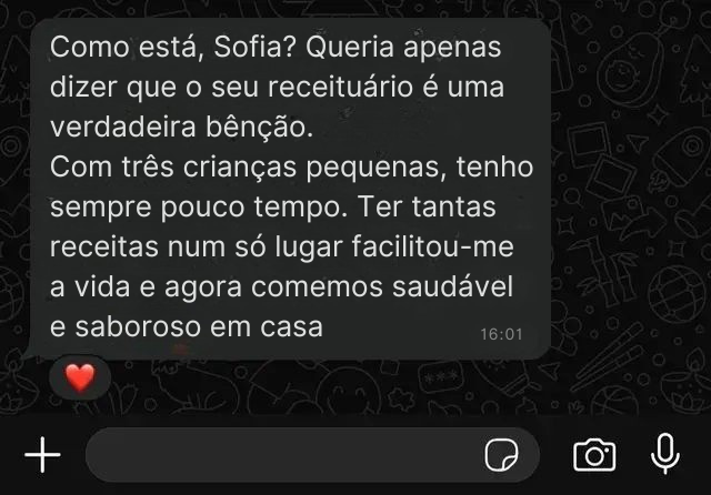 Estou a amar as receitas! Cada refeição é uma surpresa e nem parece que são sem açúcar e sem glúten. Recomendo!