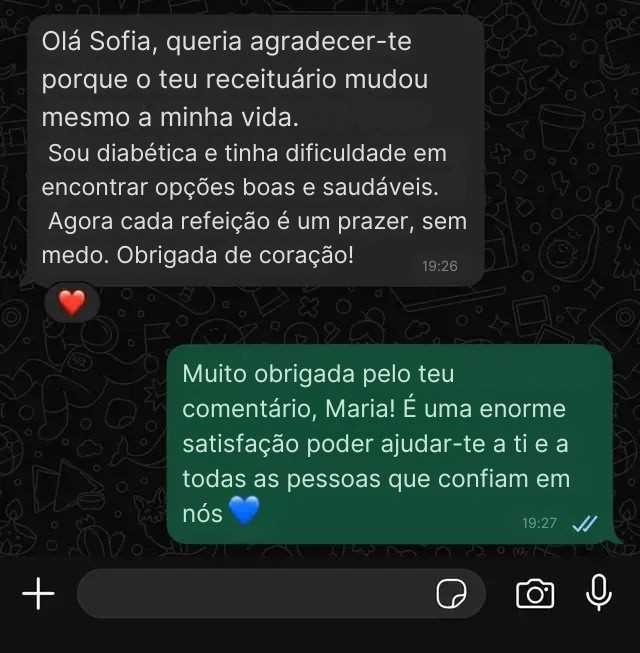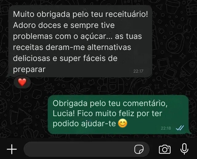 Comprei as receitas e estou completamente rendida! É incrível como são saborosas, mesmo sem açúcar e sem glúten.